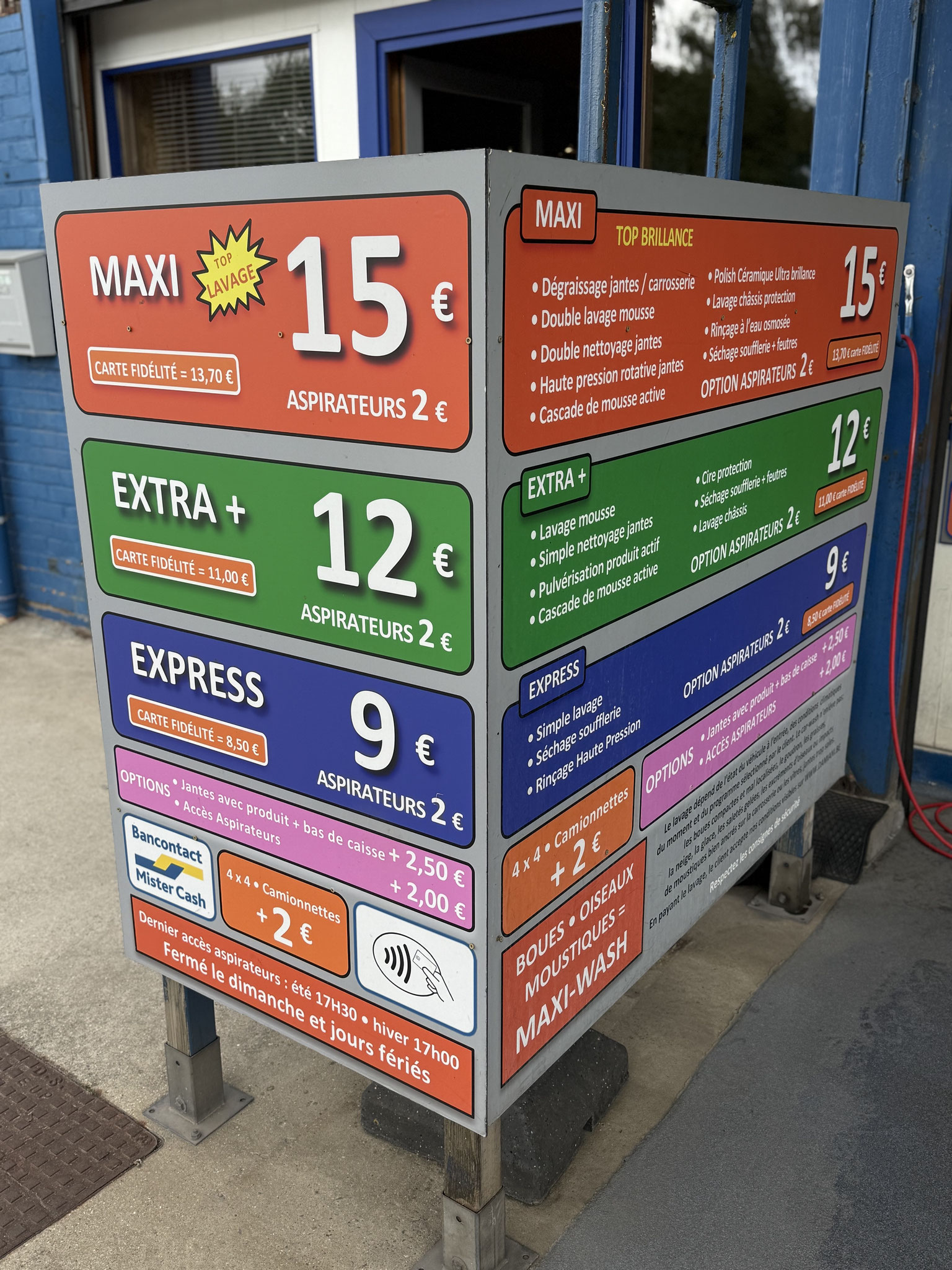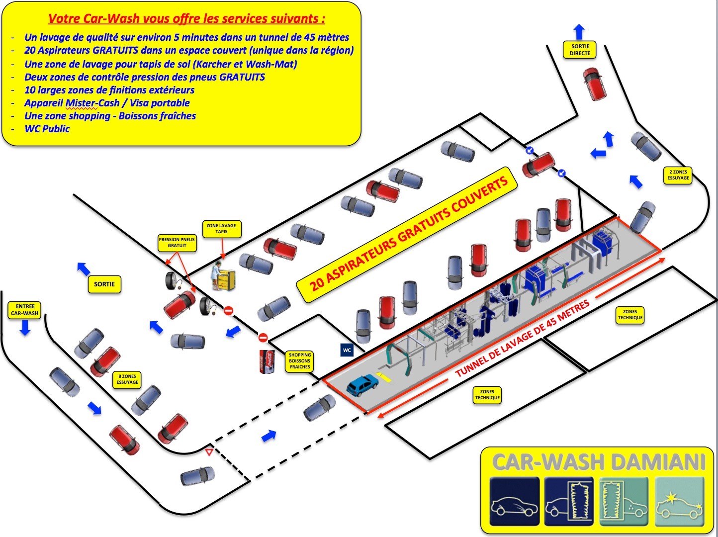 - 20 aspirateurs doubles dans nos installations couvertes, UNIQUEMENT APRÈS LAVAGE 2 €