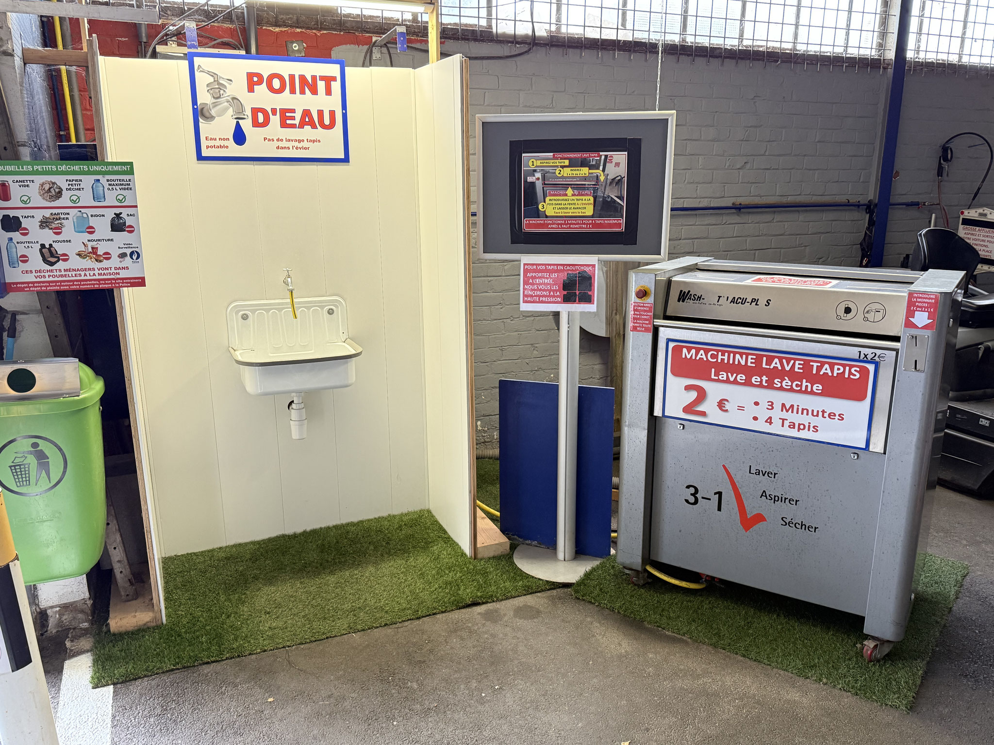 - La "Wash-Mat" permettant de laver et sécher vos 4 tapis en tissus ( 2€ pour 3 min. )