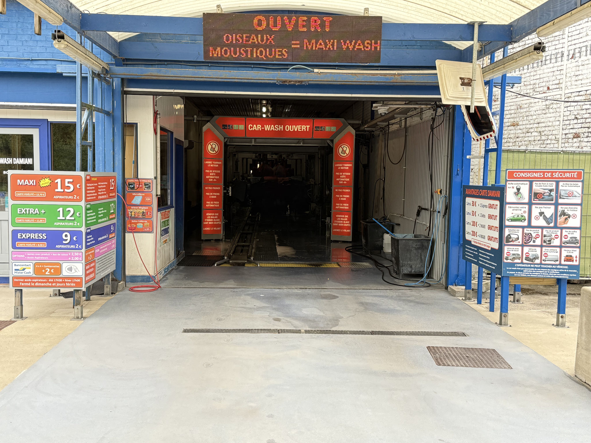 Pour les tapis en caoutchouc, adressez-vous directement à l'entrée du tunnel avec vos tapis auprès de l'opérateur.