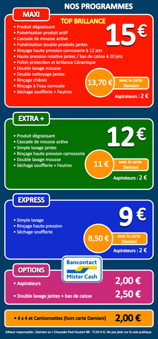 • Notre programme MAXI-WASH qui fera encore plus briller votre voiture